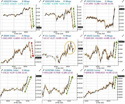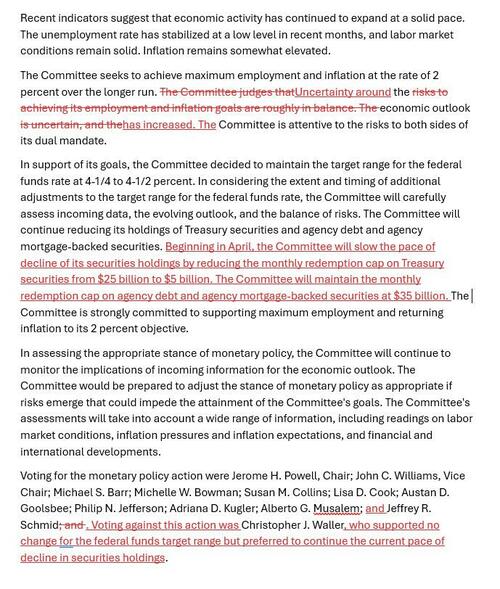 事实上,如果人们从事后回顾昨日的这个美联储议息日,不难发现,有着“新美联储通讯社”之称的著名记者Nick Timiraos在此次会议前对鲍威尔已沦为“不鸽不鹰的鸭子”的比喻,可谓是非常正确的——正如同知名财经博客网站Zerohedge所总结的,昨晚这个美联储议息夜鹰鸽信号其实整体交织,尤其是在凌晨2点正式的决议发布时: