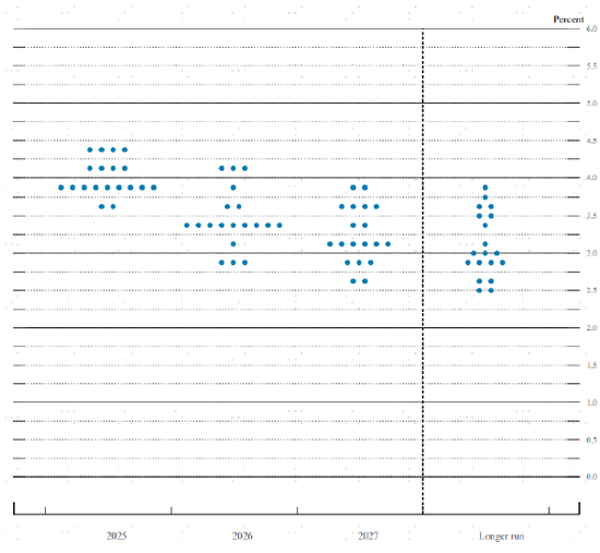 图表:3月点阵图显示2025年内仍有2次降息空间