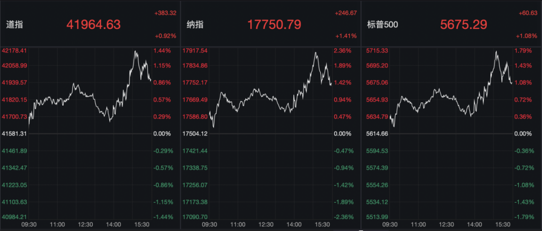 受美联储“鸽派”决议提振,美股三大指数全线走高,纳指盘中一度大涨超2%,截至收盘,纳指涨1.41%,标普500指数涨1.08%,道指涨0.92%。大型科技股集体收涨,特斯拉大涨超4%,博通涨超3%,谷歌涨超2%,苹果、微软、英伟达、亚马逊均涨超1%。