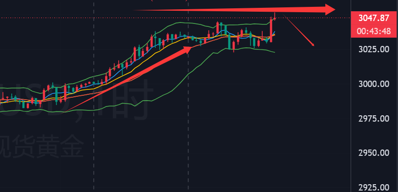 H4周期都已经在高位形成绝对的背离,随时能出现一波有力度的深蹲,日线周期的趋势支撑有两个点位3000,2955,看似价位跨度比较大,但下跌很容易走出来,H4周期的支撑点在3015附近,所以短线上关键点在3015,一旦破位就不再那么强势,大概率会直接走向3000。