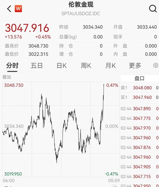 美国两年期国债收益率跌穿4%整数位心理关口,刷新日低至接近3.98%的水平,日内整体跌超5.5个基点。决议声明发布前还曾交投于4.08%附近。现货黄金刷新历史高位至3047.5美元/盎司,日内涨0.45%。