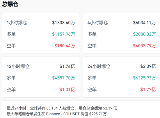截至3月20日2时,比特币日内一度涨超3%,重回84000美元关口;以太坊大涨超7%。有分析称,加密货币市场走强的导火索或许是土耳其政局动荡,在Binance平台上比特币-土耳其里拉(BTC/TRY)交易量激增,由于里拉的大幅贬值,投资者可能转向USDT等与美元挂钩的资产。数据显示,过去24小时加密货币市场有超8万人被爆仓。