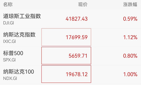 截至2:13分,美股三大股指小幅走高,纳指涨幅最高扩大至1%,标普500指数涨0.8%,道指涨0.59%。