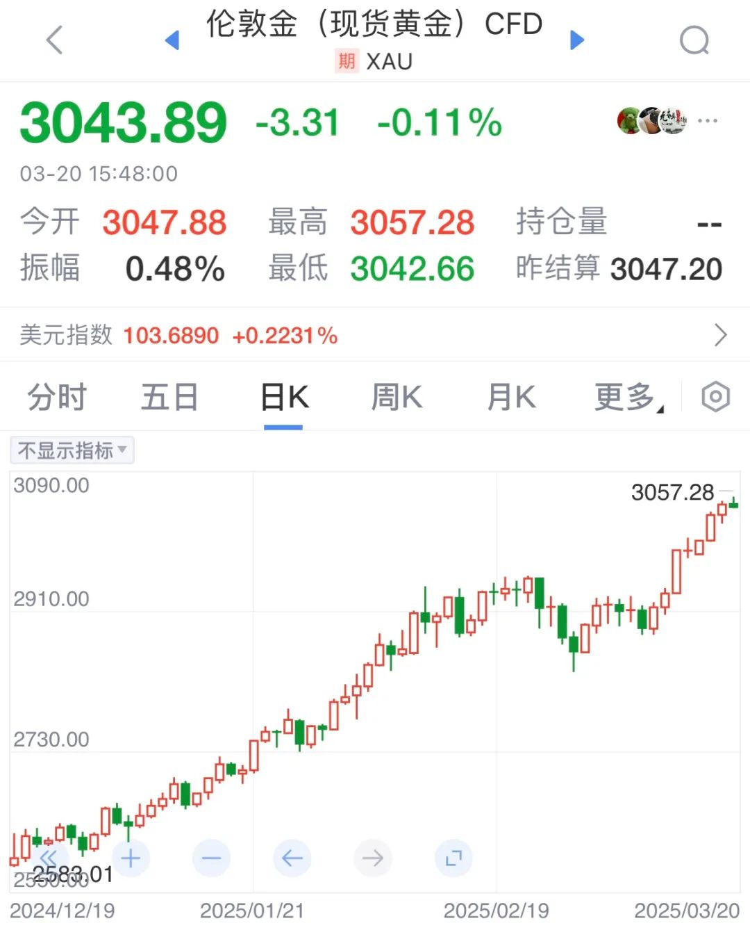 美联储3月议息会议如期维持利率不变,全面下调经济增速预期并上调通胀预期,同时小幅上调今年失业率预期。在声明中删除就业和通胀目标风险大体均衡的说法,称经济前景不确定性增加。截至发稿时,今日伦敦金价格盘中高点3057.28美元/盎司,再次刷新历史新高。