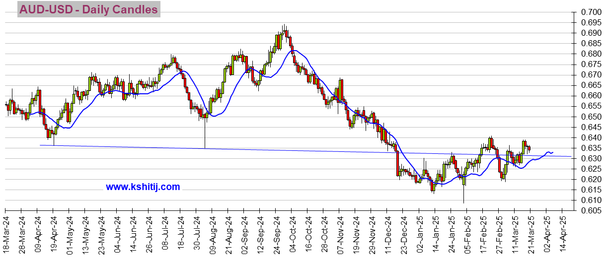 澳元/美元可能保持在0.64-0.62区间内,直到汇价朝区间任何一端实现决定性突破。