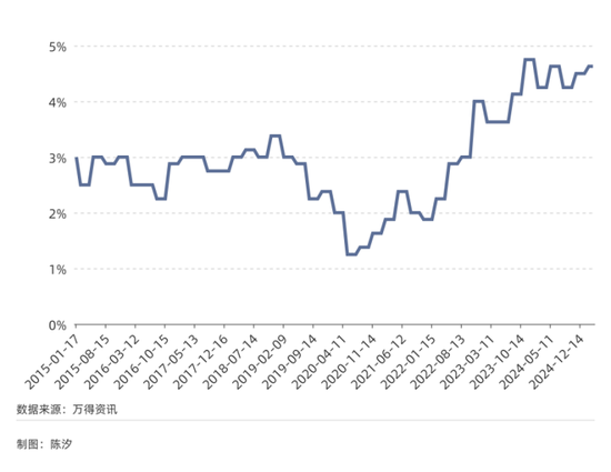 2025年1月美国人均可支配收入折算成全年收入约为65000美元,如果未来K值达到20,那么2025年黄金价格可以达到3250美元/盎司。从美国人均可支配收入的角度看,目前的黄金价格已经接近上限。