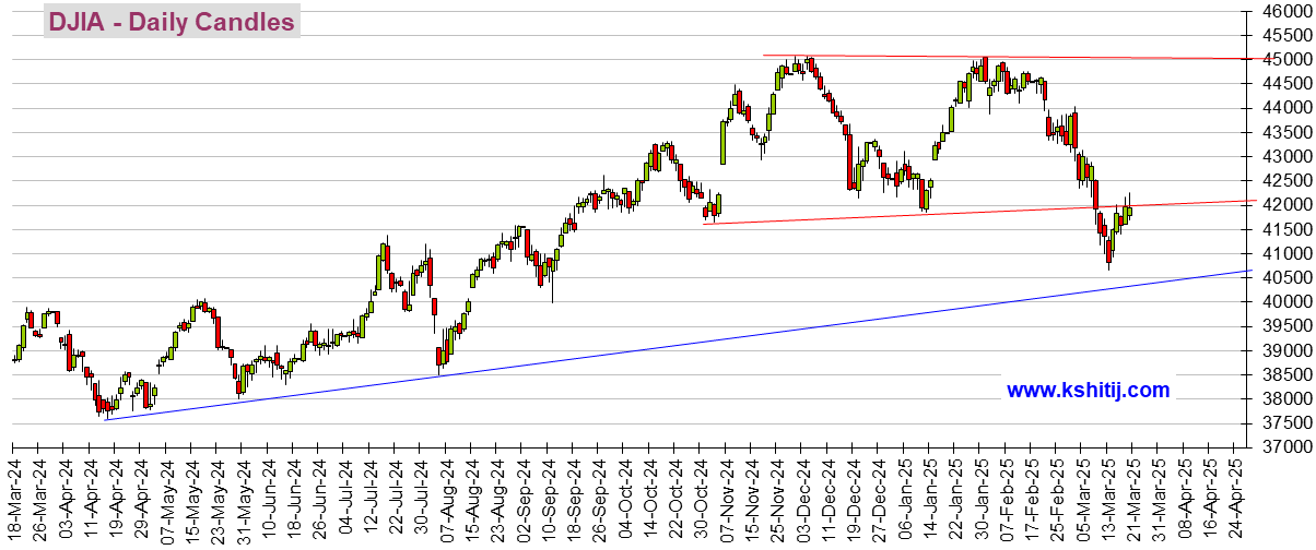 道琼斯指数一度升至42250点的高点,之后又有所回落。只要低于42100点,那么观点仍为看空,未来几周料跌至40000-39000点。