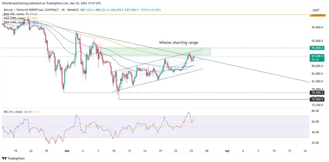 由于巨鲸可能在88000至90000美元之间做空,比特币需要收于90000美元上方才能继续上涨至100000美元。