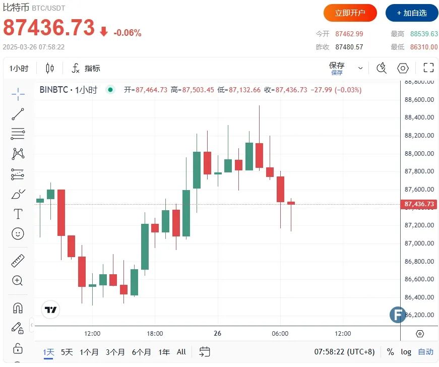 CoinTelegraph指出,在较低的时间框架(LTF)图表上,比特币于3月24日形成88752美元的盘中高点,但此后,比特币尚未创下新的盘中高点。