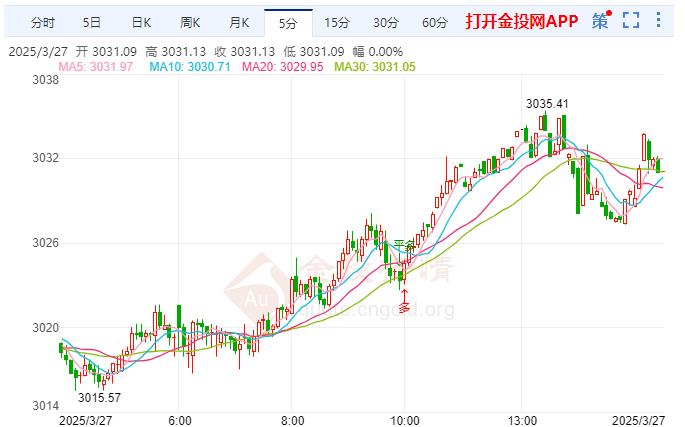周四(3月27日)现货黄金一度突破3033美元/盎司至3038.46美元/盎司,市场恐慌情绪持续升温,分析师普遍预期金价将在二季度突破3100美元大关。