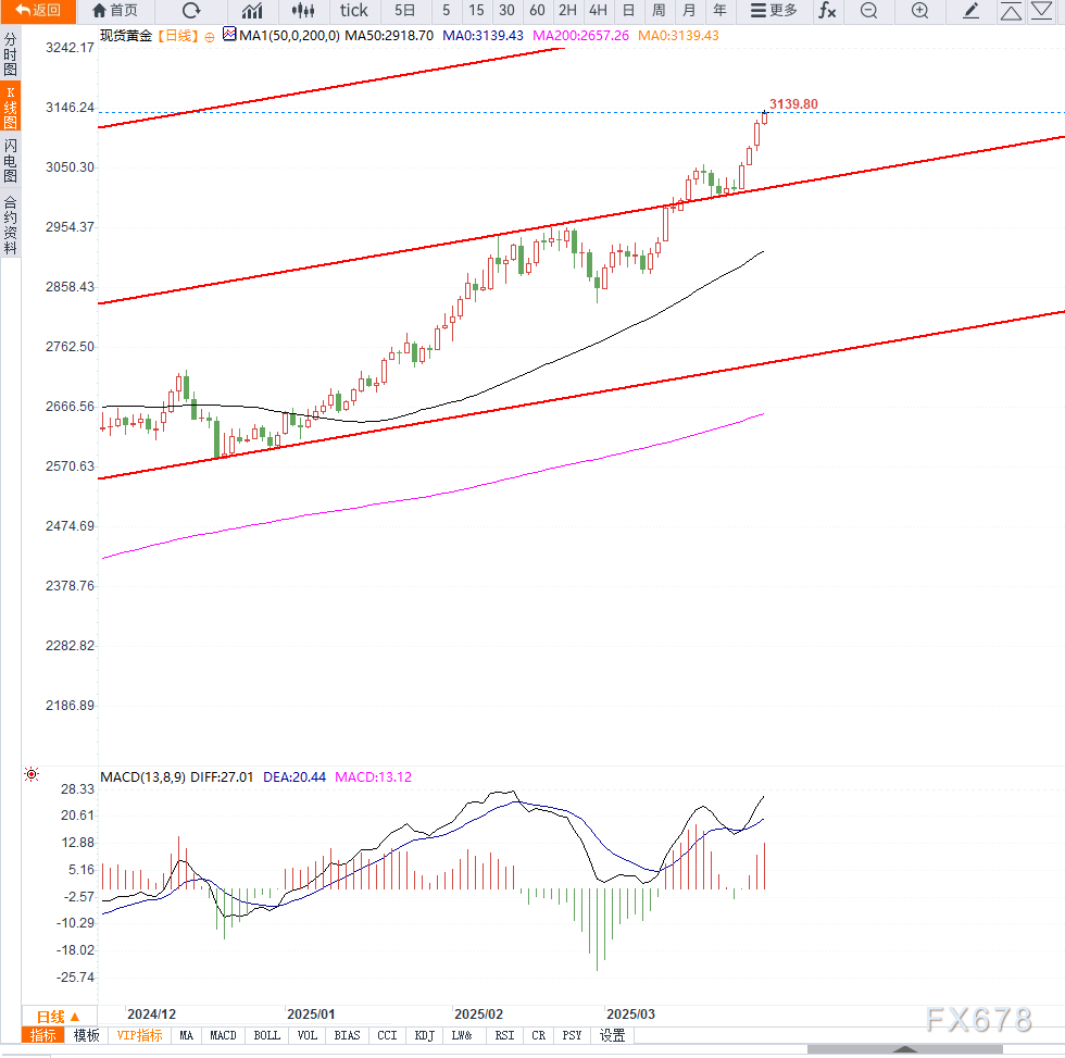 从当前的市场环境来看,黄金作为避险资产的表现仍然强劲,特别是在贸易担忧情绪升温、美元走弱和债券收益率下降的背景下。尽管短期内可能会出现价格回调,但由于经济不确定性仍然存在,黄金价格在中长期内可能会继续维持上涨趋势。