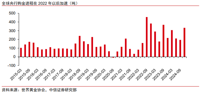 在高利率、高通胀、低增长的宏观环境之下,虽然美元依旧是全球货币体系的中心,但黄金对冲美元风险的价值正在加强,这是金价面临的重要边际变化。美元的风险一方面在于美国国内,即美国的长期高通胀风险和特朗普政策风险,这对应着黄金的抗通胀属性和避险属性;美元的风险另一方面则在于当前的全球货币体系,即其他经济体对于美元信用体系的隐忧和强化本国主权信用的需求,这对应着黄金的信用属性。