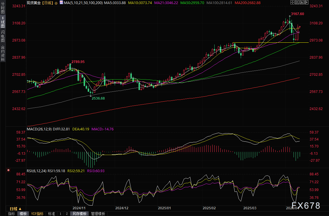 (现货黄金日线图,来源:易汇通)北京时间07:33,现货黄金现报3086.83美元/盎司。