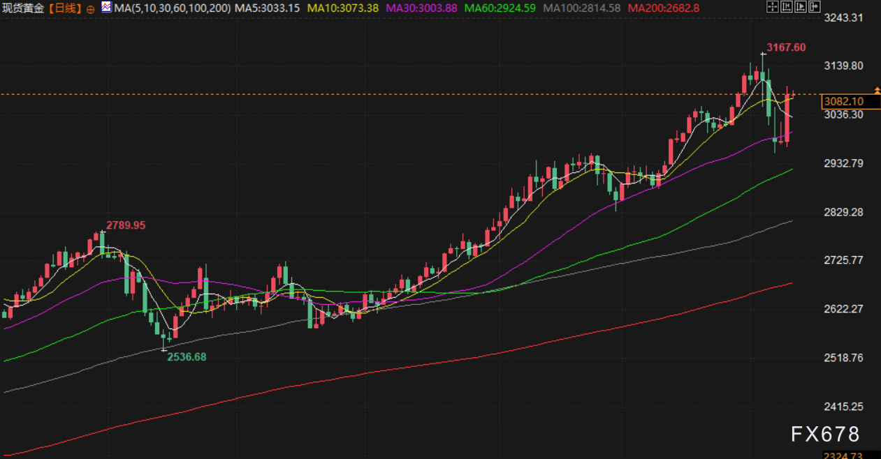 现货金报每盎司3059.76美元,上涨2.6%,稍早一度高见近3100美元,美国期金上涨3%,结算价报3079.40美元。