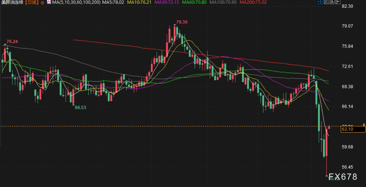 周四(北京时间4月10日),现货黄金交投于3082.45附近,金价周三攀升逾2%,创下2023年10月以来最佳单日表现,受避险资金流支撑,贸易紧张局势升级。美原油上涨超1%,交投于63.13美元/桶附近,美国总统特朗普表示,暂停他上周宣布的对其他大多数经济体征收关税后,油价周三攀升超7%,从盘初触及的四年低点反弹。