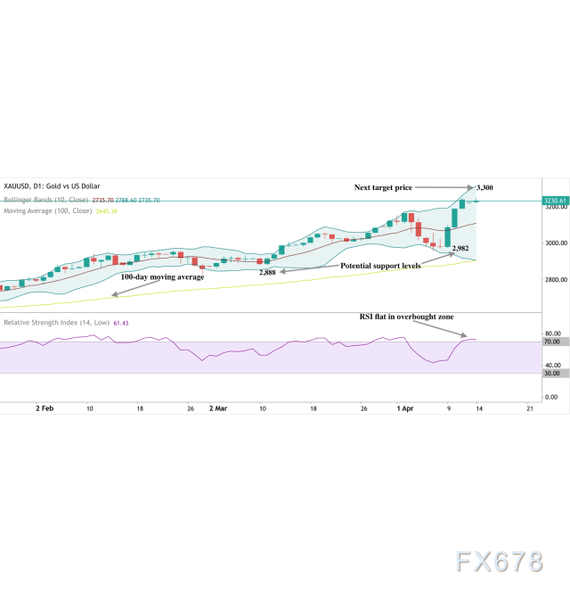如果涨势恢复,心理目标价位为每盎司3300美元