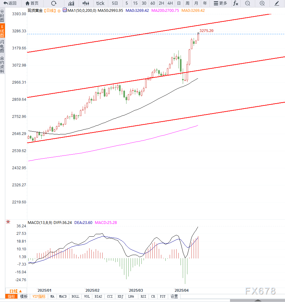 本周三,黄金价格一度上涨1.4%,升破3275美元/盎司,刷新历史新高。此前高点刚刚在本周一创下,显示出市场对黄金作为避险资产的强烈青睐。