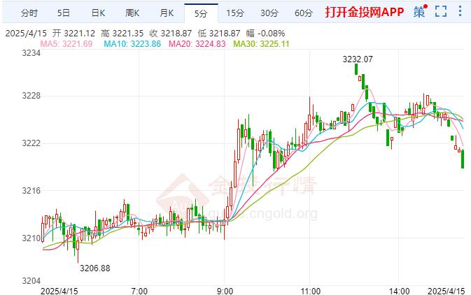 金价周一冲高回落,在盘中稍早刷新历史高点至3245.51后回落,收盘下跌0.85%至3210.39美元/盎司,因白宫豁免多数国家电子产品高额关税后,风险情绪有所改善。