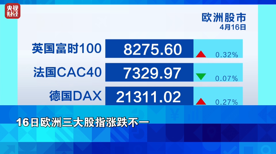 荷兰光刻机巨头阿斯麦最新财报中的主要指标远低于预期,其2025财年一季度新订单数量环比锐减45%,阿斯麦在荷兰股市交易的股票价格当天跌超5%。此外,英国3月份通胀率有所回落,推动英国国债收益率下降,提振英国股市。截至收盘,英国股市涨0.32%,法国股市微跌0.07%,德国股市涨0.27%。