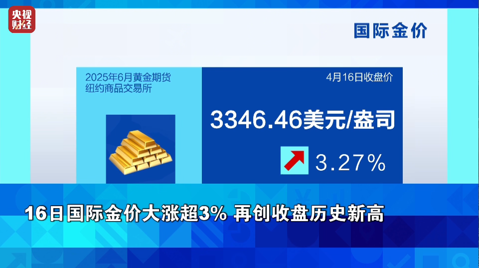 16日国际金价大涨超3%