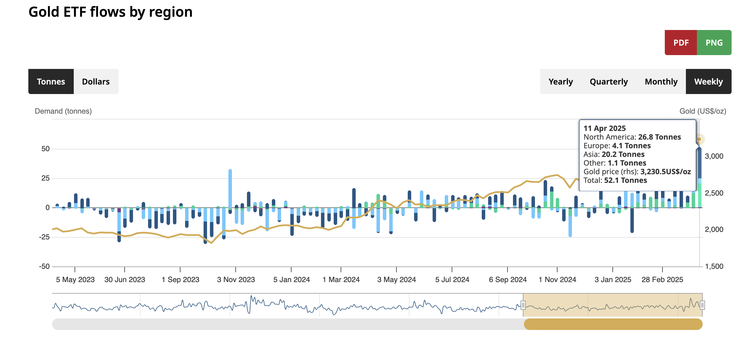 就当前的数据来看(更新到3月),3月是黄金ETF资金连续第四个月实现流入,为9.4亿美元,由中国和日本主导,一季度亚洲地区流入总量高达33亿美元。但当时北美地区仍独占鳌头,3月流入量高达65亿美元,占当月全球黄金ETF需求的76%。