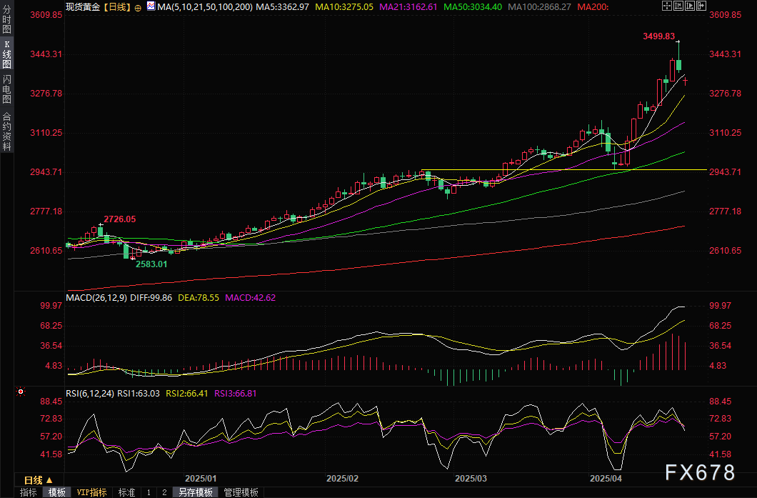 在贝森特称关税僵局不可持续后,美国股市上涨逾 2%,打压黄金的避险买需,美元反弹,也对金价形成压制。