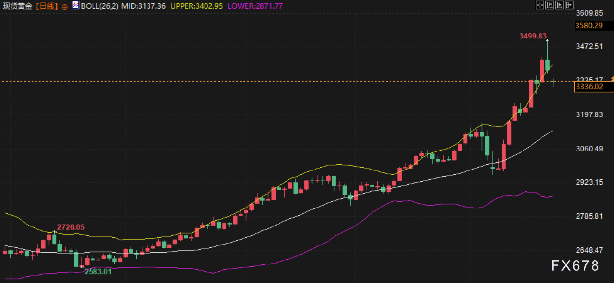 周三(北京时间4月23日),现货黄金下跌超1%,交投于3346.31附近;金价在周二盘中短暂触及3500美元的历史高点后回落,因美国财长贝森特暗示贸易紧张局势将缓和,这激发了股市乐观情绪并提振美元,同时,美原油上涨超2%,交投于64.35美元/桶,受助于美国对伊朗实施新制裁以及股市上涨,有望剑指65美元/桶关口。