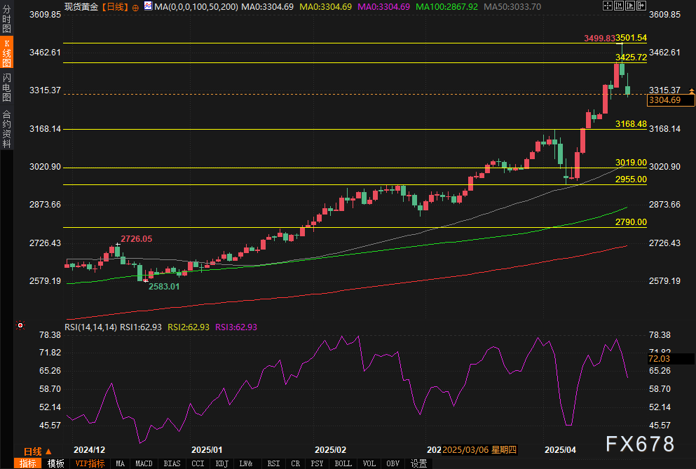 周三中的角色,进一步为市场注入乐观情绪。全球宏观环境方面,俄乌局势的持续不确定性以及部分新兴市场货币波动,仍为黄金提供一定支撑,但短期内,市场更关注美国政策信号的变化。知名对冲基金经理在接受采访时指出,全球央行将继续增持黄金以对冲地缘政治和经济风险,凸显黄金作为长期避险资产的吸引力。然而,短期内,黄金的快速上涨引发技术性回调,市场情绪趋于谨慎。