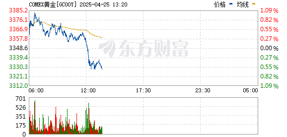 午后,现货黄金突然大跳水,从涨超0.8%直线下跌,截至发稿跌近0.8%,一度回落至3320美元下方。
