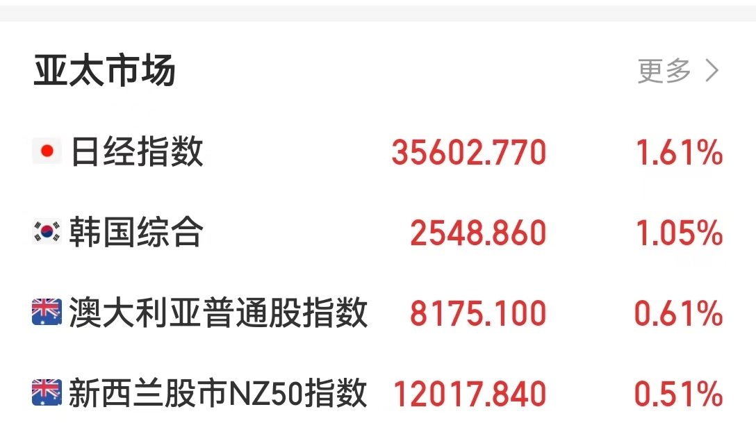 今早,日本股市开盘后直线拉升,截至发稿,日经225指数涨1.6%。个股方面,日本富士通公司股价涨超6%;韩国综合指数涨1.05%。