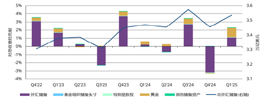 * 截至2025年一季度。回报构成分析=外汇储备总额占比*季度回报率。