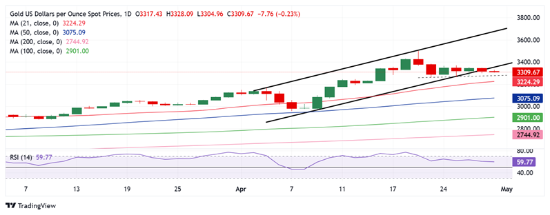 周三(4月30日)亚市尾盘,现货黄金维持日内温和跌势,目前金价位于3309美元/盎司附近。FXStreet高级分析师Dhwani Mehta撰文,对金价日内交易进行分析。