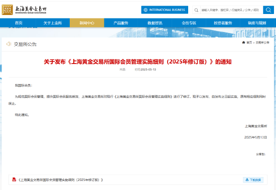 上海黄金交易所发布《上海黄金交易所国际会员管理实施细则(2025年修订版)》。