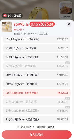 “商家收到货后迟迟不发出新的黄金戒指,客服每次回复的发货时间都不一样,黄金价格持续上涨,商家就一直拖延发货时间,理由是工厂交付延误、产品有瑕疵等。”张女士向《消费者报道》记者表示,“这款商品一直没有下架,一直在售卖中,价格还在不断上涨。”