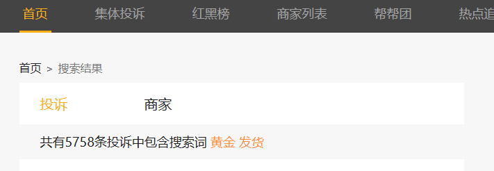 在某投诉平台上,有5000多条投诉包含搜索词“黄金 发货”,多位消费者反映“金手镯,卖家迟迟不发货”“黄金戒指,一直未发货”“黄金涨价了,商家一直拖延不发货”等。