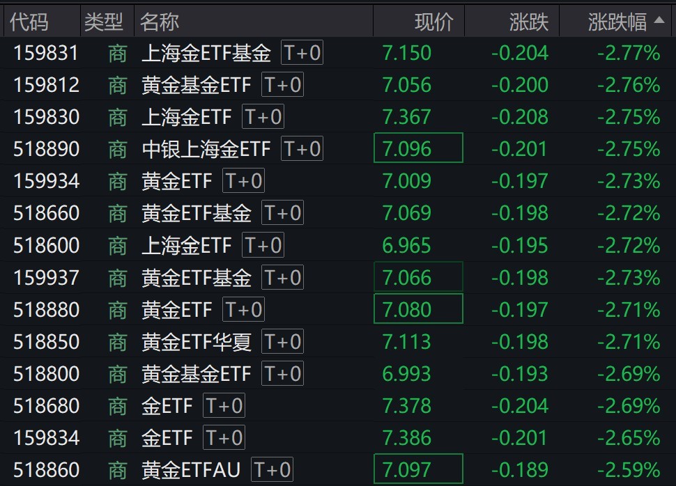 受盘面影响,场内多只商品黄金相关ETF跌超2%。