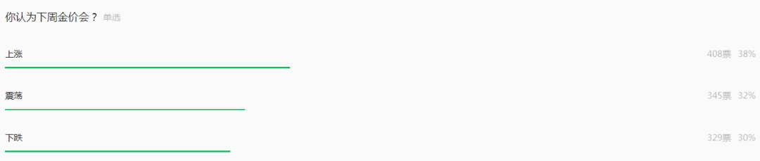 5月12日当周,伦敦金价格开盘3281.84美元/盎司,最高3292.29美元/盎司,最低3120.48美元/盎司,收盘3201.59美元/盎司。北京黄金经济发展研究中心调查显示,市场人士认为本周国际金价震荡下行可能性较大。投票显示,有38%的读者看涨本周金价、32%看震荡、30%看空。
