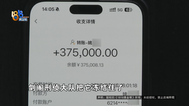 小陈介绍:“银行说是四川当地刑侦,剑阁刑侦大队把它冻结住了。警方没有主动联系我,是我主动去网上找,网上找他们的区号加110,一步一步慢慢找到,从反诈中心,找到他们刑侦大队。”