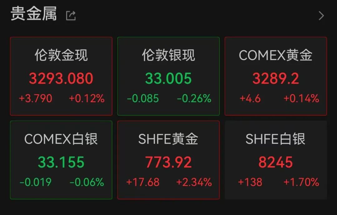 Wind数据显示,美东时间周二(5月20日),国际金价出现反弹,现货黄金收盘涨幅接近2%,COMEX黄金涨幅也接近2%。21日早间,双双小幅上涨,现货黄金一度突破3300美元,截至发稿,报3293.080美元/盎司,COMEX黄金涨0.14%,报3289.2美元/盎司。