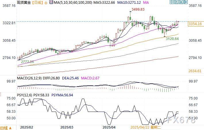 现货黄金日线图 来源:易汇通北京时间5月26日10:53 现货黄金 报 3351.56 美元/盎司