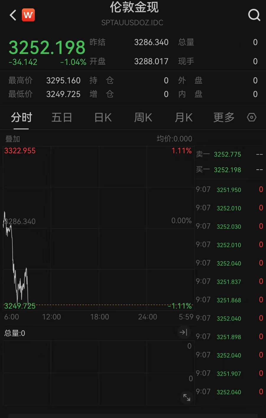 5月29日,国际黄金市场再度剧烈震荡,现货黄金一度跌超1%,截至9时08分,报3252.19美元/盎司。COMEX黄金主力合约同步下挫,报3276美元/盎司,跌1.40%。