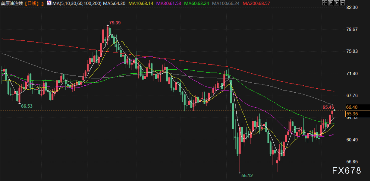 布伦特原油期货收高0.9%,结算价报每桶 67.04 美元,盘中稍早触及每桶67.12美元的4月28日以来最高。 美国原油期货上涨1.1%,报65.29美元,盘中一度触及每桶 65.38 美元的4月4日以来最高。美元走软给油价带来了一些支撑。美元指数下跌 0.3%,使得石油对持有其他货币的投资者来说更加便宜。