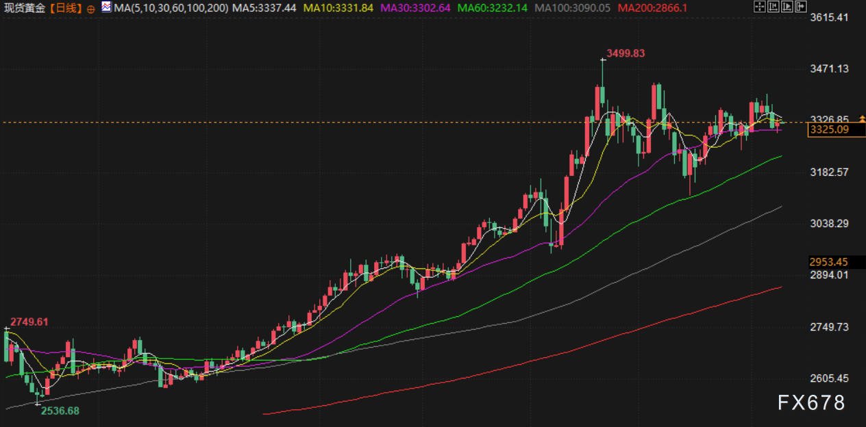 金价周一上涨,受助于美元走软,市场参与者密切关注正在进行的贸易会谈。现货金上涨0.8%,至每盎司3335.02美元,盘初一度跌至逾一周最低。 美国期金收高0.2%,结算价报3354.9美元。美元指数下跌 0.3%,使得以美元计价的黄金对持有其他货币的投资者来说更加便宜。