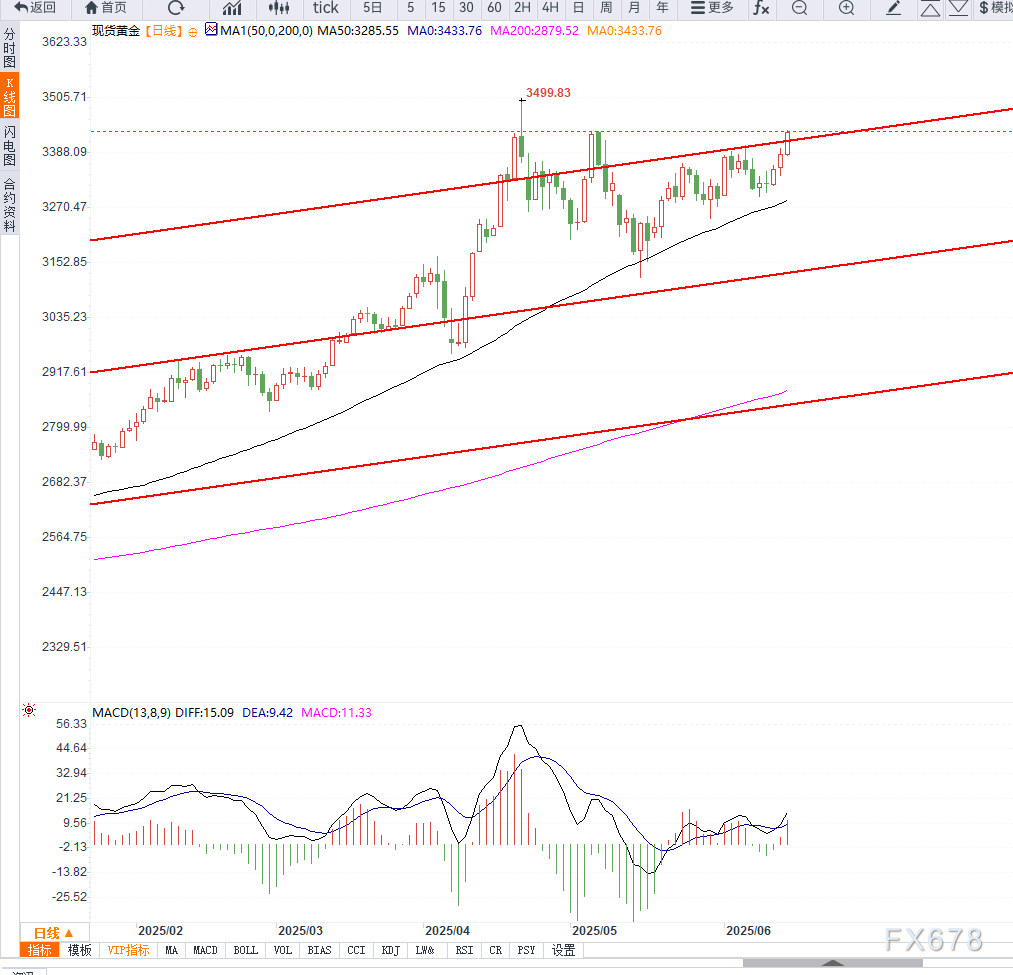 若突破3450美元一线,后续有望挑战3500美元附近;若短期调整,支撑位关注3380美元附近。