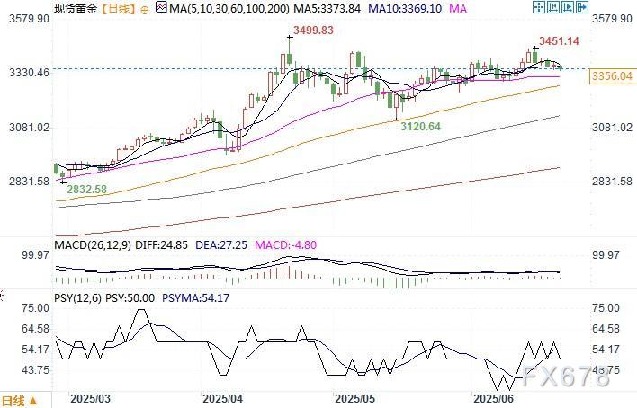 现货黄金日线图 来源:易汇通北京时间6月20日13:09 现货黄金 报 3354.04 美元/盎司
