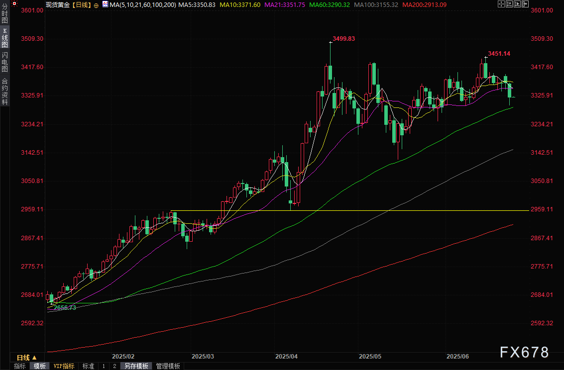当前黄金市场正处于多重因素的交织之中。伊朗与以色列停火协议削弱了避险需求,但美伊谈判的不确定性和潜在冲突风险为金价提供了底线支撑。美联储对关税引发的通胀风险保持谨慎,推迟降息可能导致美元走强,压制金价,但经济放缓信号(如房地产市场低迷)又强化了降息预期和黄金的避险角色。技术面上,金价在3300美元上方震荡,下行风险与上行潜力并存。