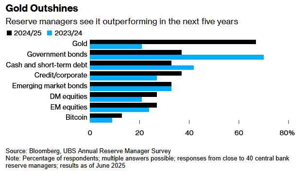 调查显示,这一购买趋势还将持续。52%的央行表示,未来一年希望继续增持黄金。根据调查结果,央行普遍认为黄金将在未来五年内带来超过其他资产类别的回报。