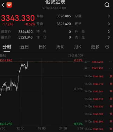 今日现货黄金在盘中直线拉升,而A股冲高回落。