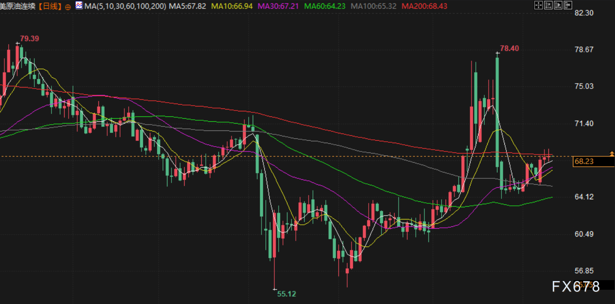 周四(北京时间7月10日),现货黄金交投于3318.85美元/盎司附近,金价周三略有上涨,投资者密切关注美国与其贸易伙伴之间的谈判,特朗普再向7国发出加码关税信函,而美元走强抑制了金价的进一步上涨;美原油交投于68.19美元/桶附近,油价周三持稳,投资者权衡了强劲的美国汽油需求数据和红海航运遇袭事件,同时美国即将征收铜关税。