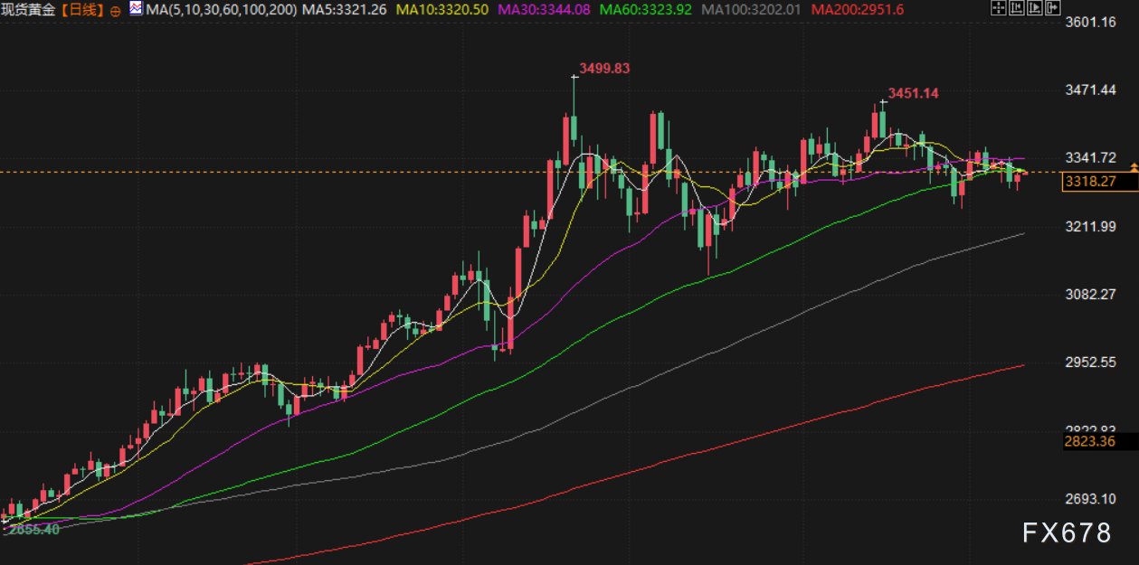 金价周三略有上涨,投资者密切关注美国与其贸易伙伴之间的谈判,而美元走强抑制了金价的进一步上涨。现货金上涨0.3%,报每盎司3310.26美元,当天早些时候曾触及6月30日以来的最低水平。美国期金收高0.1%,报3321美元。